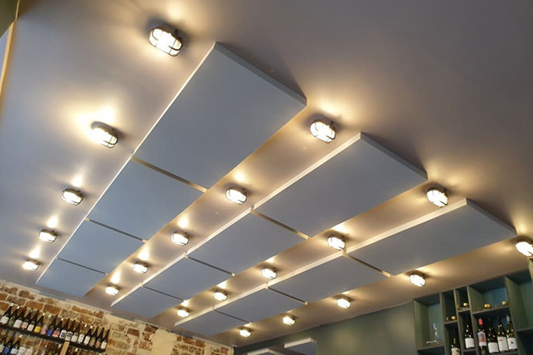 Ils peuvent être suspendus en bord à bord ou en laissant un intervalle entre les panneaux, ce qui permet aux acousticiens de régler finement l’acoustique de la salle.